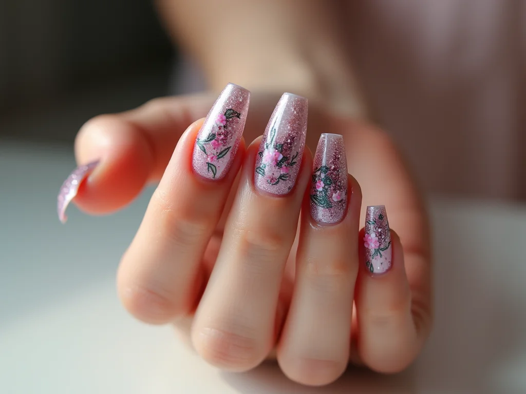 As unhas encapsuladas são um show à parte. Imagina ter glitter, flores secas, folhas de ouro ou até mesmo pequenos adesivos selados dentro de uma camada de gel? O resultado é um efeito tridimensional deslumbrante e, o melhor, a decoração fica protegida contra desgaste. É como ter um mini universo nas suas unhas.