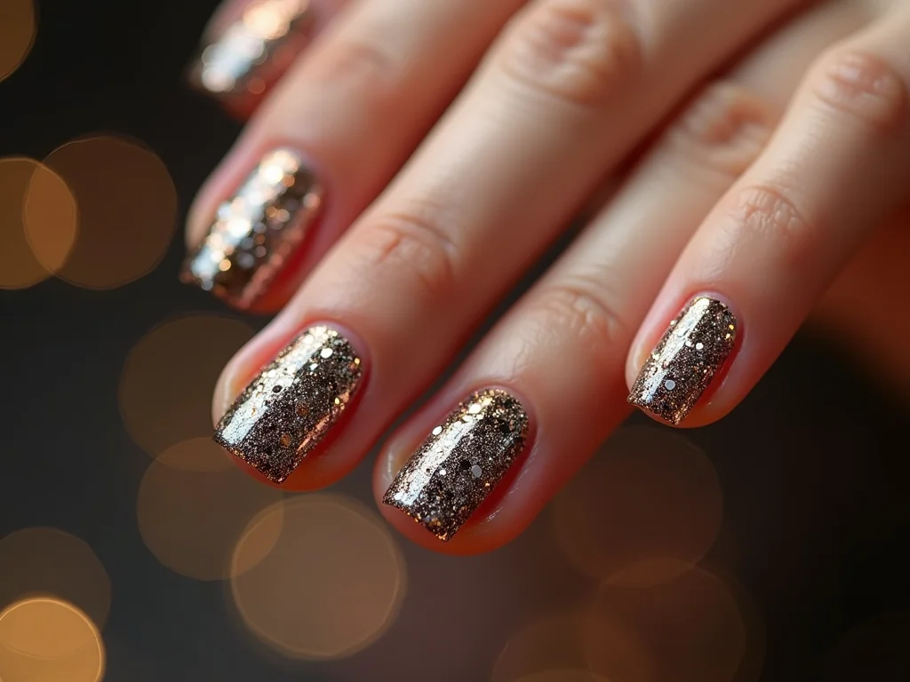 Para quem está começando, sugiro testar com adesivos de unhas com glitter. Eles já vêm prontos e o resultado é super rápido. Se for usar glitter solto, um pincel chanfrado úmido com o top coat é o truque para aplicá-lo sem fazer bagunça. Fica tranquilo, o efeito é lindo.