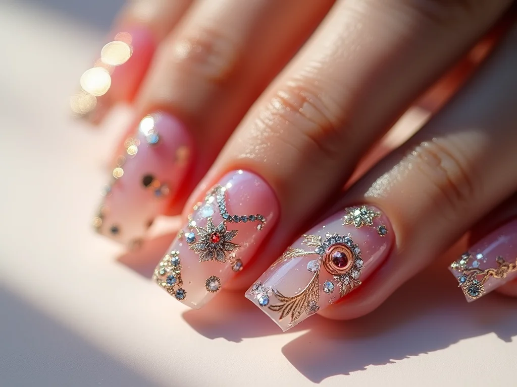 As pedrarias e os acessórios transformam qualquer unha de gel em uma obra de arte. Sabe aquela ocasião especial que pede um charme extra? São eles que dão o toque final. Eu adoro como um pequeno detalhe pode mudar tudo. Pense em cristais que brilham com a luz, ou mini pérolas que adicionam uma elegância discreta.