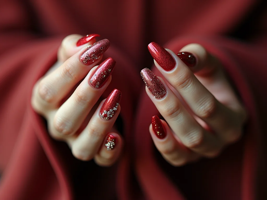 Dica Prática: Se você tiver um esmalte craquelado vermelho, use-o em uma única unha para criar um ponto focal impactante e misture com esmaltes vermelhos de acabamento brilhante nas demais.