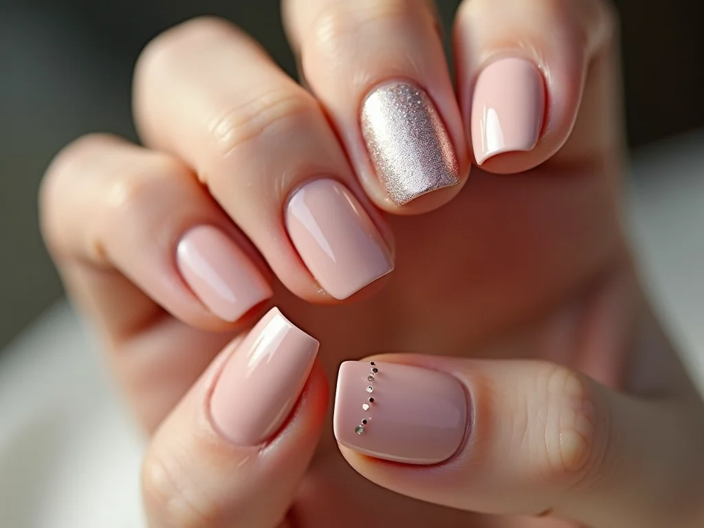 Glitter e Pedrarias na Medida CertaPequenos pontos de glitter ou uma ou duas pedrinhas em uma unha específica.Adiciona um brilho especial e um toque glamouroso discreto.Para quem gosta de um toque de brilho e sofisticação.