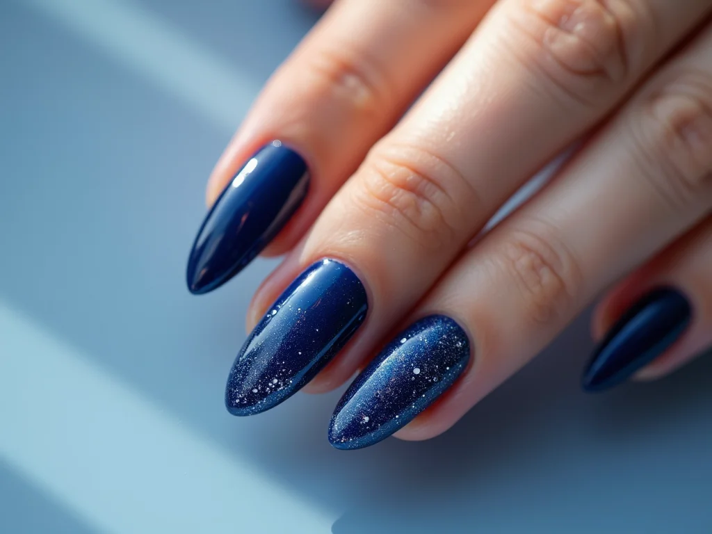 Quando eu quero uma unha decorada azul forte que chame atenção, mas de um jeito elegante, eu aposto sem medo no glitter. Tem tantas opções! Glitter fino que dá um brilho sutil, glitter mais grosso que é pura festa, ou até mesmo os holográficos que mudam de cor com a luz. Aplicar uma camada fina sobre o azul forte já transforma o visual. Fica um charme!
