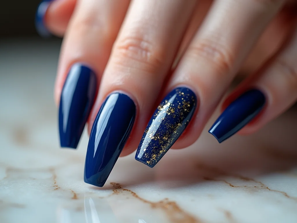 Azul profundo: o charme das unhas em gel formato bailarina azul.