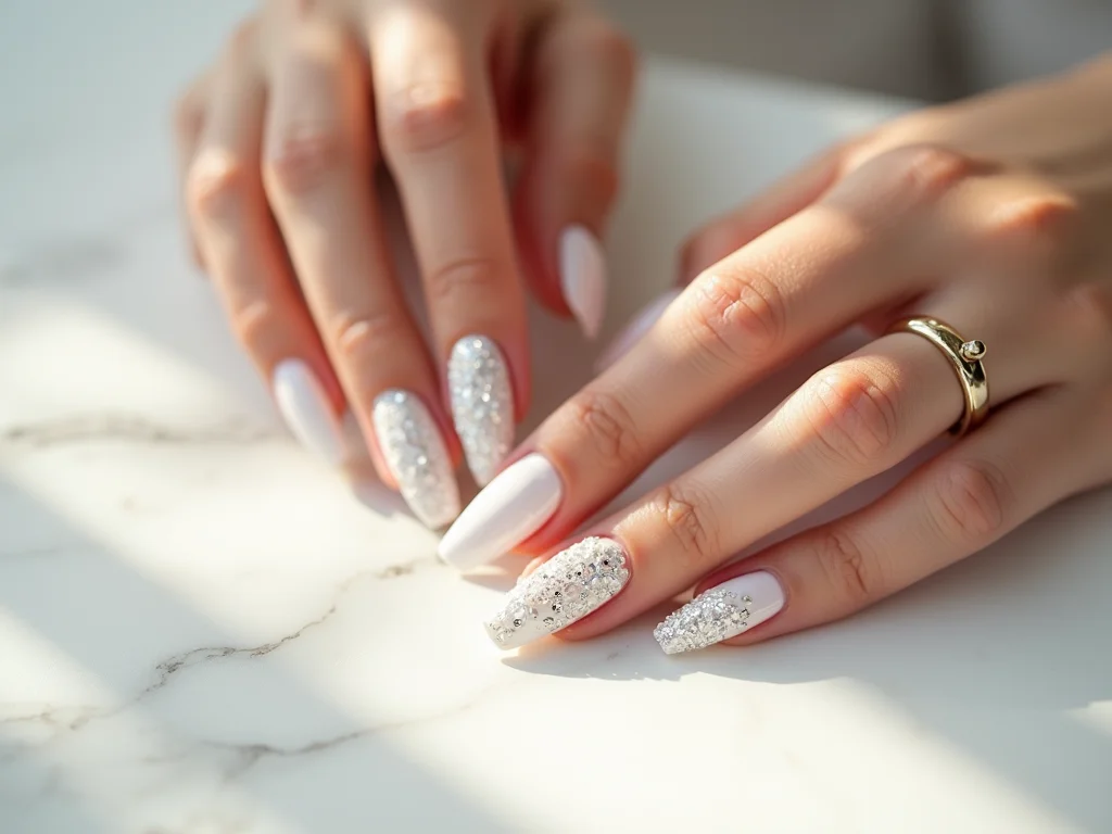 Ah, o glitter e as pedrarias! Quando eu penso em uma unha decorada branca, a primeira coisa que me vem à mente é um toque de luz. É o que transforma uma unha simples em algo realmente especial, sabe? É a pedacinha de brilho que levanta qualquer look, do casual ao super elaborado. E o legal é que dá pra usar de muitas formas!