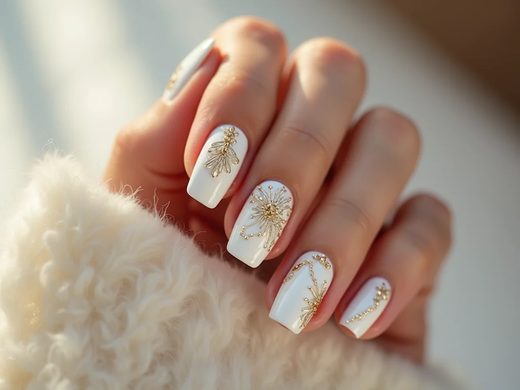 Minimalismo Sofisticado: Unhas Branco com Detalhes Dourados Discretos