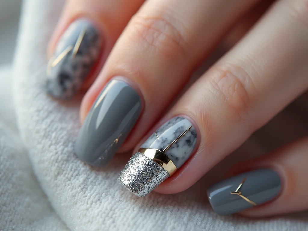 | Combinações de Cores | Cinza com prata, dourado, branco ou preto para diferentes ocasiões. | unha cinza e prata, unha cinza e dourado |
