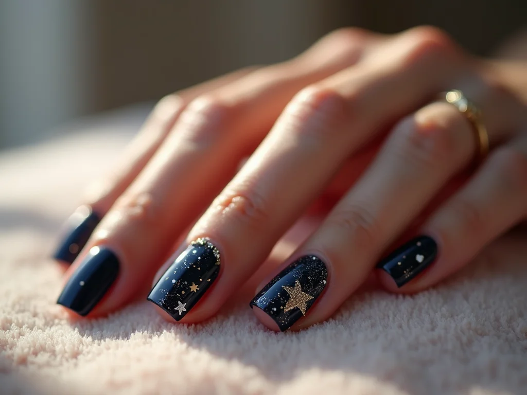 Manicure com tema de estrelas: a escolha perfeita para a noite.