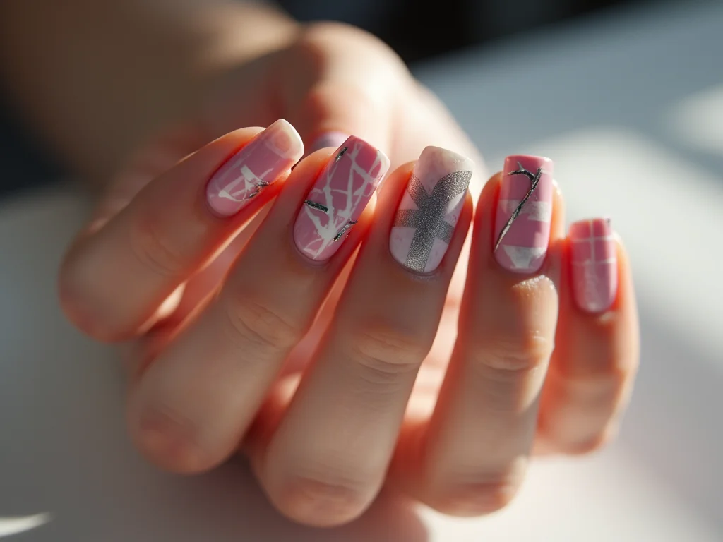 A fita adesiva, especialmente a fita crepe, é uma aliada poderosa na criação de unhas geométricas. A versatilidade dela permite que você desenhe linhas retas, formas pontiagudas, triângulos, quadrados e até padrões complexos como xadrez. A ideia é usar a fita para delimitar as áreas que receberão diferentes cores de esmalte ou acabamentos. Depois de aplicar a fita, pinte a área desejada e, enquanto o esmalte ainda estiver úmido, remova cuidadosamente a fita. O resultado são desenhos nítidos e precisos que dão um up instantâneo no visual.