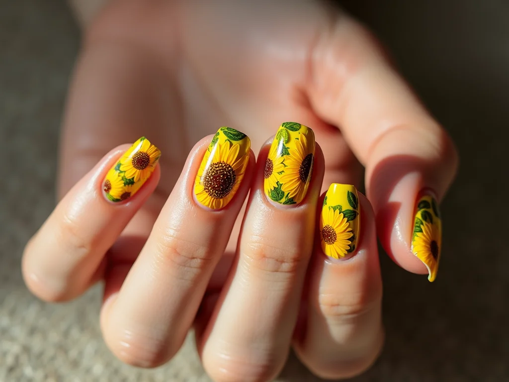 Girassóis Vibrantes: Uma Explosão de Cores nas Suas Unhas
