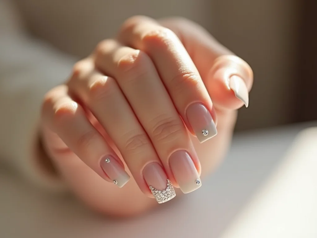 Manicure com pedras discretas para um toque de sofisticação.