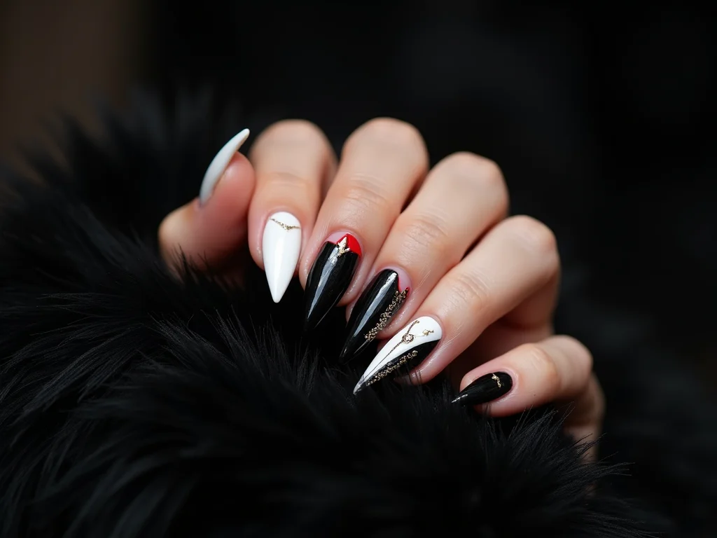 Se você ama unhas com atitude, aposto que o preto, o branco e o vermelho já passaram pelas suas mãos! Essas cores são um clássico imbatível, especialmente quando pensamos em unhas decoradas no estilo Cruella. É um visual que não tem erro, sabe? Funciona para ocasiões especiais ou para dar um up no dia a dia. Eu adoro como essa combinação traz um toque de sofisticação com uma pitada de ousadia.