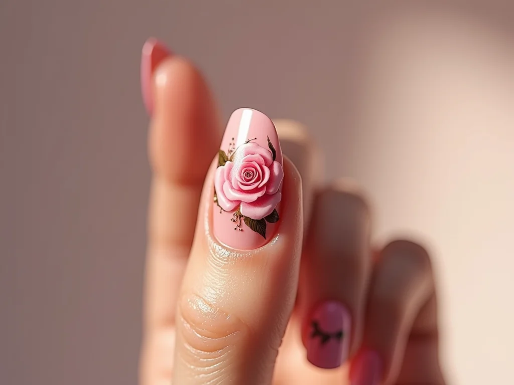 Vamos ousar um pouco mais? Para uma unha decorada de rosa com um toque moderno, experimente misturar com elementos geométricos. Uma linha fina preta em volta da rosa, ou alguns triângulos discretos, dão um ar contemporâneo. Você pode até brincar com diferentes tons de rosa na mesma unha, criando um degradê suave antes de adicionar os detalhes.