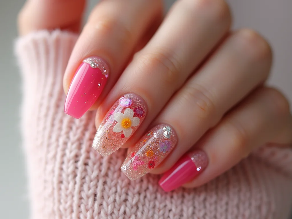 Eu amo unhas decoradas, e essa técnica de encapsular flores secas é um verdadeiro encanto! Imagina ter a delicadeza da natureza ali, bem nas suas unhas. É uma unha decorada encapsulada que traz um toque romântico e super diferenciado. As flores, depois de secas, são preservadas dentro de uma camada de gel ou acrílico, mantendo a beleza e a cor por muito mais tempo. Fica tão charmoso, parece arte em miniatura!