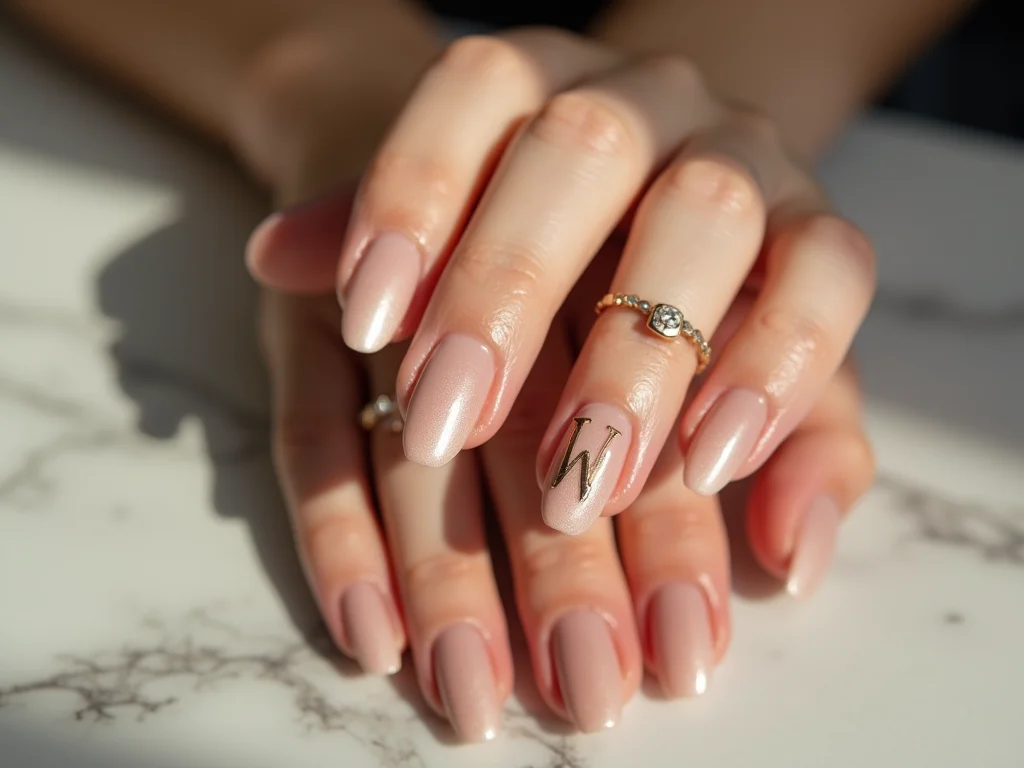 Para um visual chique e discreto, o desenho minimalista da letra W com pincel fino em tons neutros, como branco ou dourado sobre base nude, é a escolha certa. Esse estilo se harmoniza perfeitamente com formatos de unha como oval ou amendoado, que alongam as mãos e realçam o design.