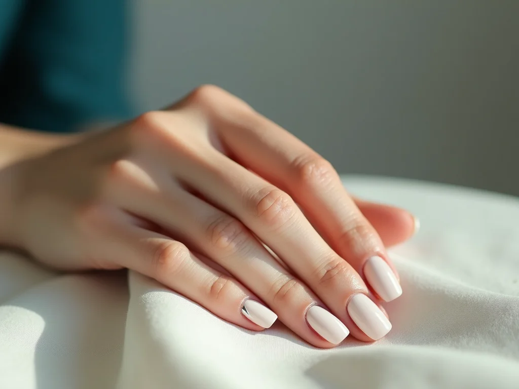 Manicure moderna e natural com esmalte cremoso e cutícula bem feita.