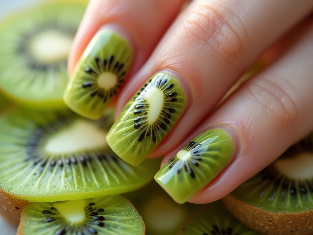 Unhas com Toque de Fruta: A Delicadeza do Kiwi nas Suas Mãos