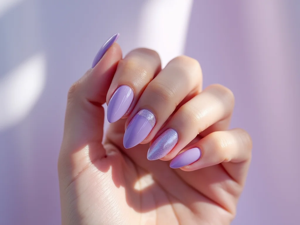 Vamos falar do formato amendoado para unhas lilás. Eu adoro! Ele alonga os dedos e dá um ar super elegante, sabe? E quando combinado com tons de lilás, do mais clarinho ao mais vibrante, fica um charme só. Já experimentei em várias clientes e o resultado é sempre um sucesso. Fica delicado e moderno ao mesmo tempo.