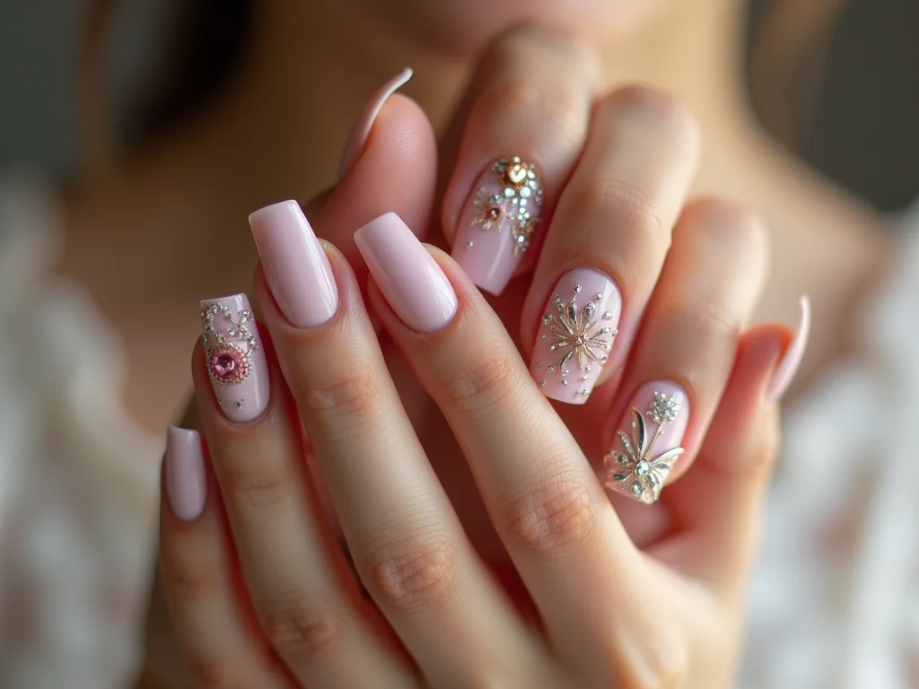 Existem pedrarias de todos os tipos: strass, cristais, mini pérolas, lantejoulas, e até mini corações ou estrelas. Os apliques podem ser feitos de metal, resina ou acrílico. Eles dão um relevo interessante para a unha, criando um efeito 3D super charmoso. Dá para misturar tamanhos e formatos, criando composições únicas. O importante é que o acabamento seja bom para não descolar fácil.