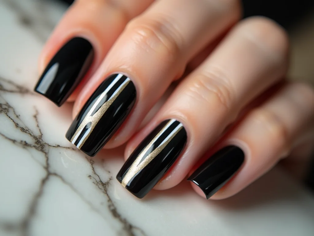 Combinações Clássicas: Preto e Branco, o Charme AtemporalNunca saem de moda. Transmitem elegância e versatilidade.Use as listras em uma ou duas unhas como ponto focal, ou em todas para um visual impactante. Fica bom em qualquer formato de unha.