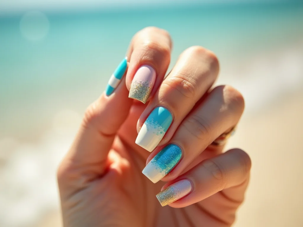 Ah, o glitter! Quem não ama um brilho extra para levantar o astral? Para a praia, eu acho que esmaltes com glitter são a escolha perfeita. Eles capturam a luz do sol de um jeito especial, sabe? Sabe aquela sensação de estar leve e divertida? É exatamente isso que um esmalte com glitter traz para as suas unhas decoradas para a praia. Fica um charme!