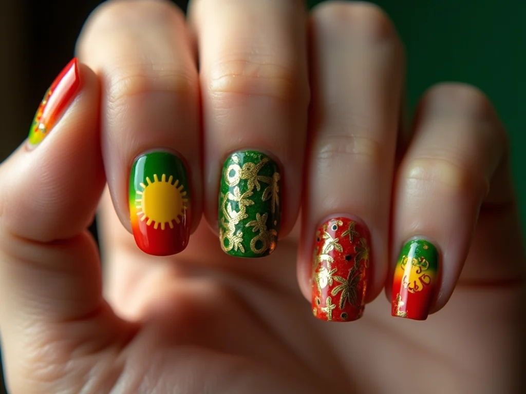 Combinar listras e ondas na mesma mão é um arraso! Uma unha pode ter as listras clássicas em verde e amarelo, e outra, as ondas em vermelho e preto. Ou então, misturar tudo em uma única unha, fazendo listras na diagonal e depois adicionando algumas ondas por cima. O importante é quebrar a monotonia e dar um toque de alegria para o seu look. Vamos combinar, unhas decoradas com reggae são um charme.
