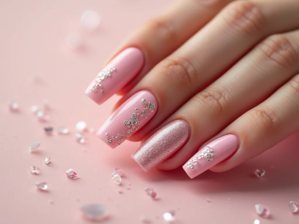 Agora, se o assunto é textura, prepare-se para se apaixonar. Glitter é um clássico, né? Um degradê suave de glitter fino sobre o rosa quadrado é puro glamour. Ou que tal um efeito marmorizado? Fica com um ar mais sofisticado, sabe? E para quem curte algo mais discreto, um adesivo de strass ou um detalhe em metalizado na base da unha já faz toda a diferença.