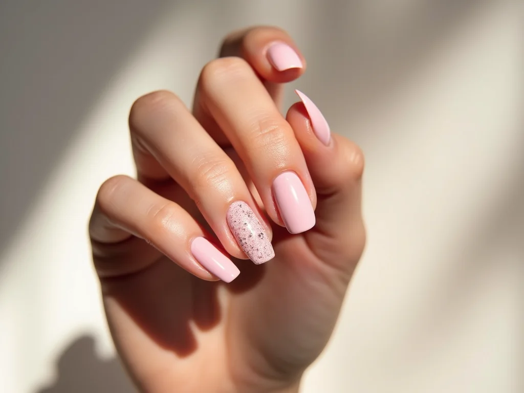 Aura Delicada: Unhas Rosa Claro com Toque de Brilho Sutil