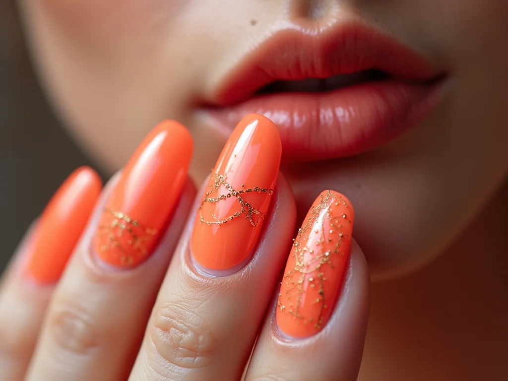 Unhas salmão com glitter dourado podem ser usadas no dia a dia?