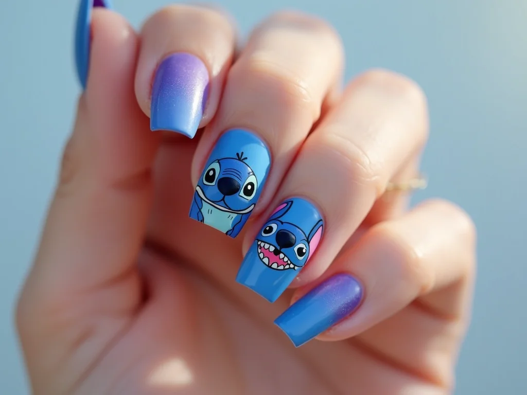 Efeitos Especiais: Glitter, Degradê e Detalhes que Fazem a DiferençaUm degradê em tons de azul pode simular o céu onde o Stitch adora ficar. Glitter fino no lugar certo dá um brilho especial. Pequenos detalhes como um coraçãozinho ou a patinha dele fazem toda a diferença.