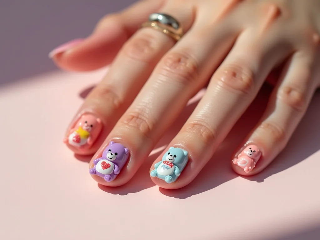 Vamos falar de cor? Para as unhas com ursinhos carinhosos, a gente busca aquele tom lúdico e quentinho. Pense nos tons pastel: o rosinha bebê, o azul clarinho, o verde menta. Eles dão a base perfeita, sem brigar com a fofura dos personagens. Sabe aquele efeito delicado? É exatamente isso que essas cores trazem. Fica tranquilo(a), não tem erro!