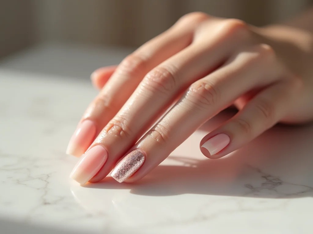 Manicure elegante para 2025: aposte em tons pastel com um detalhe dourado.