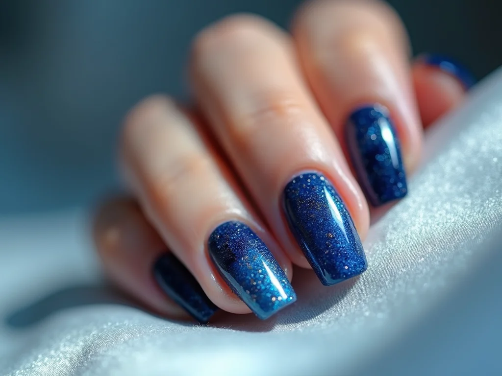 - Toque de Dourado ou Prata: Para um visual mais glamuroso, aposte em detalhes metálicos. Uma filha única com glitter dourado sobre um azul marinho, ou um contorno fino com prata em volta da unha azul. Uau!
