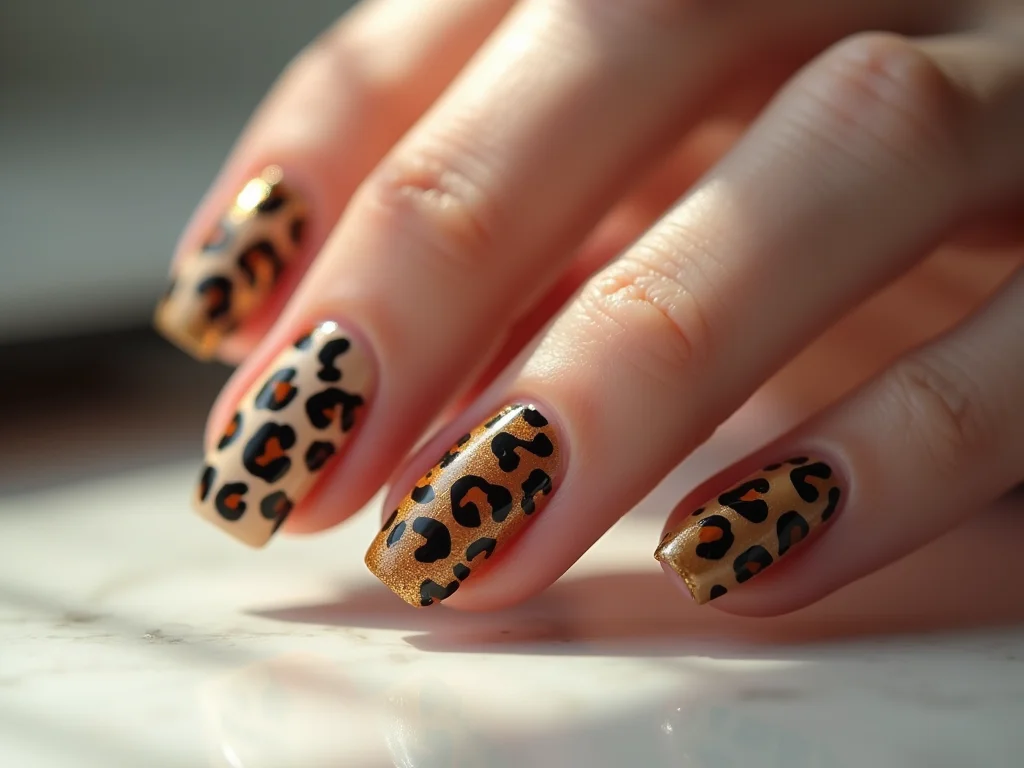 Essa estampa, que mescla tons quentes como caramelo, bege e marrom escuro, é um verdadeiro coringa. Ela transita com maestria entre looks casuais e eventos formais. Imagina só: suas unhas em destaque, adicionando um toque de elegância sem esforço algum.