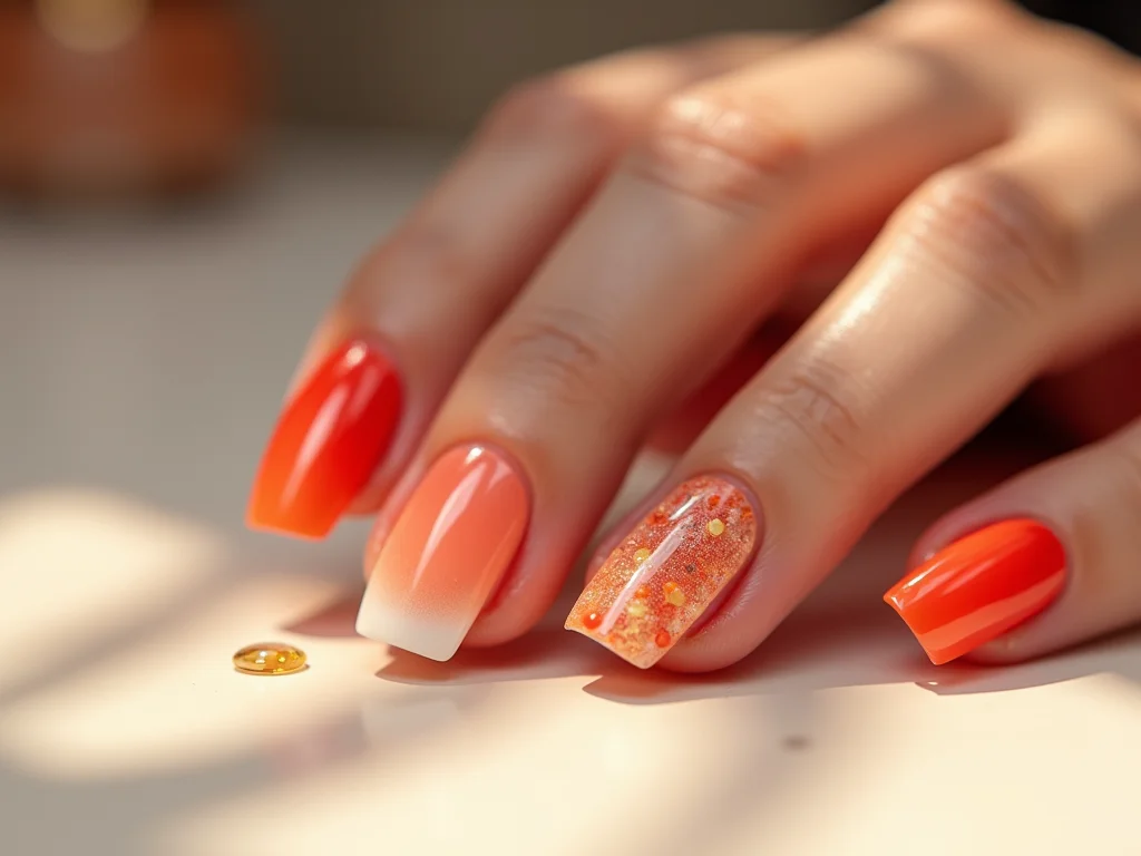 • Ousadia com glitter: Um toque de glitter dourado ou furta-cor sobre o laranja pode elevar sua nail art a outro nível.