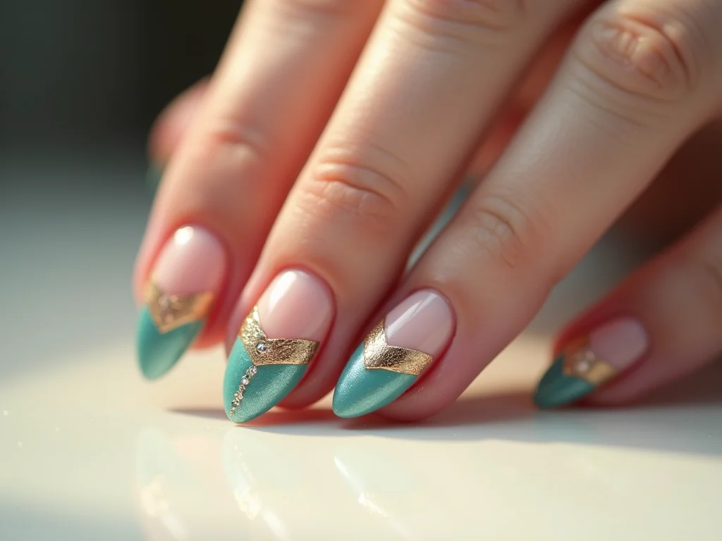 Nail art minimalista sofisticada com folha de ouro.