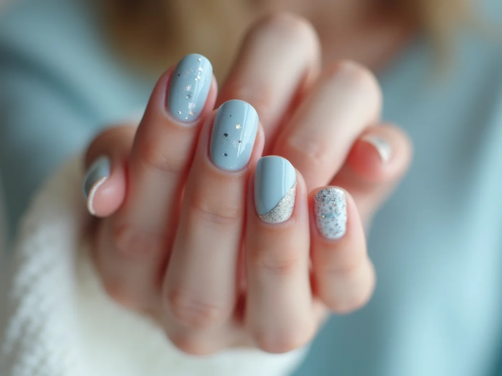 Ideias de nail art azul com acabamento cintilante.